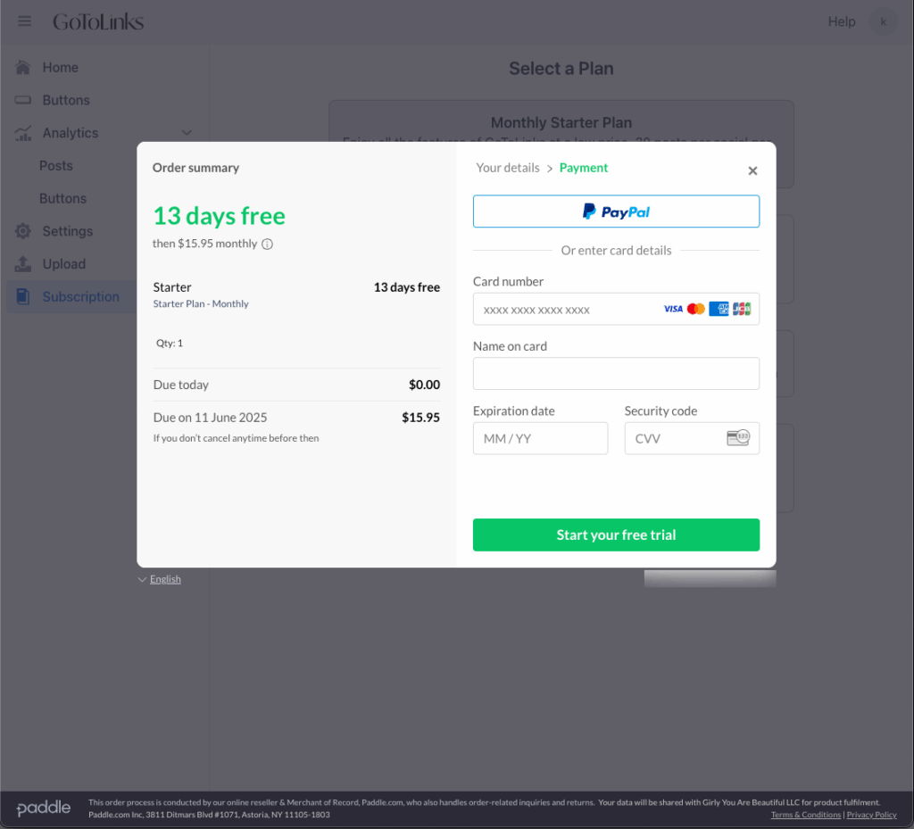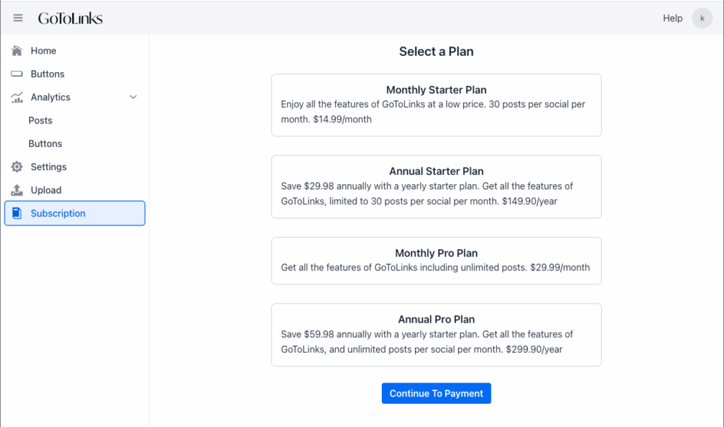 To ensure uninterrupted access to your GoToLinks account, select a subscription that goes into effect at the end of your 14 day free trial. You will not be billed until the end of your free trial period.