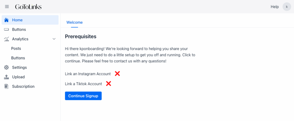 - Choose a username: the username will be used for your link in bio link: gotolinks.com/username