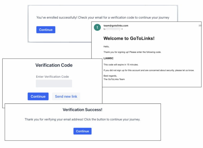 - On the verification success screen, click the Continue button.